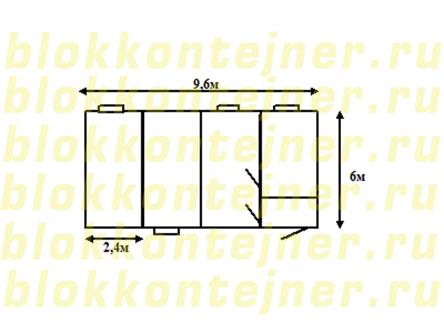 Модульное здание БМ (9,6*6,0*2,5м) состоит из 4 шт. Блок-контейнеров  БК (6,0*2,4*2,5м).