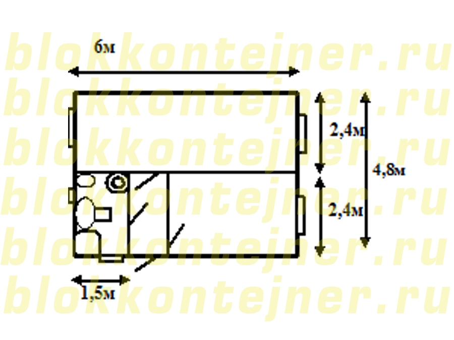 Модульное здание 6*4,8*2,5 м.-1шт,  состоит из 2-х  БК  6,0*2,4*2,5 м.